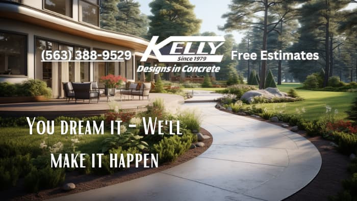If you have a vision for your outdoor spaces, the pros at Kelly Designs in Concrete can make it happen! Call us today for a free consultation & estimate and let’s make your dreams come true.